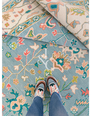 Friendly FYI: These are designed to be used as a *guide only*, and due to the incredibly special custom nature of our rugs, shades can vary based on dye lots and looms. (Once woven together, colors can also look a little more saturated.)