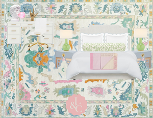 Friendly FYI: These are designed to be used as a *guide only*, and due to the incredibly special custom nature of our rugs, shades can vary based on dye lots and looms. (Once woven together, colors can also look a little more saturated.)