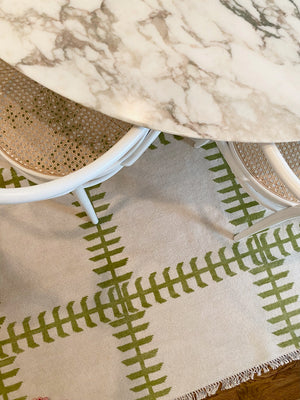 Our rugs are 100% wool pile on a cotton foundation for durability.