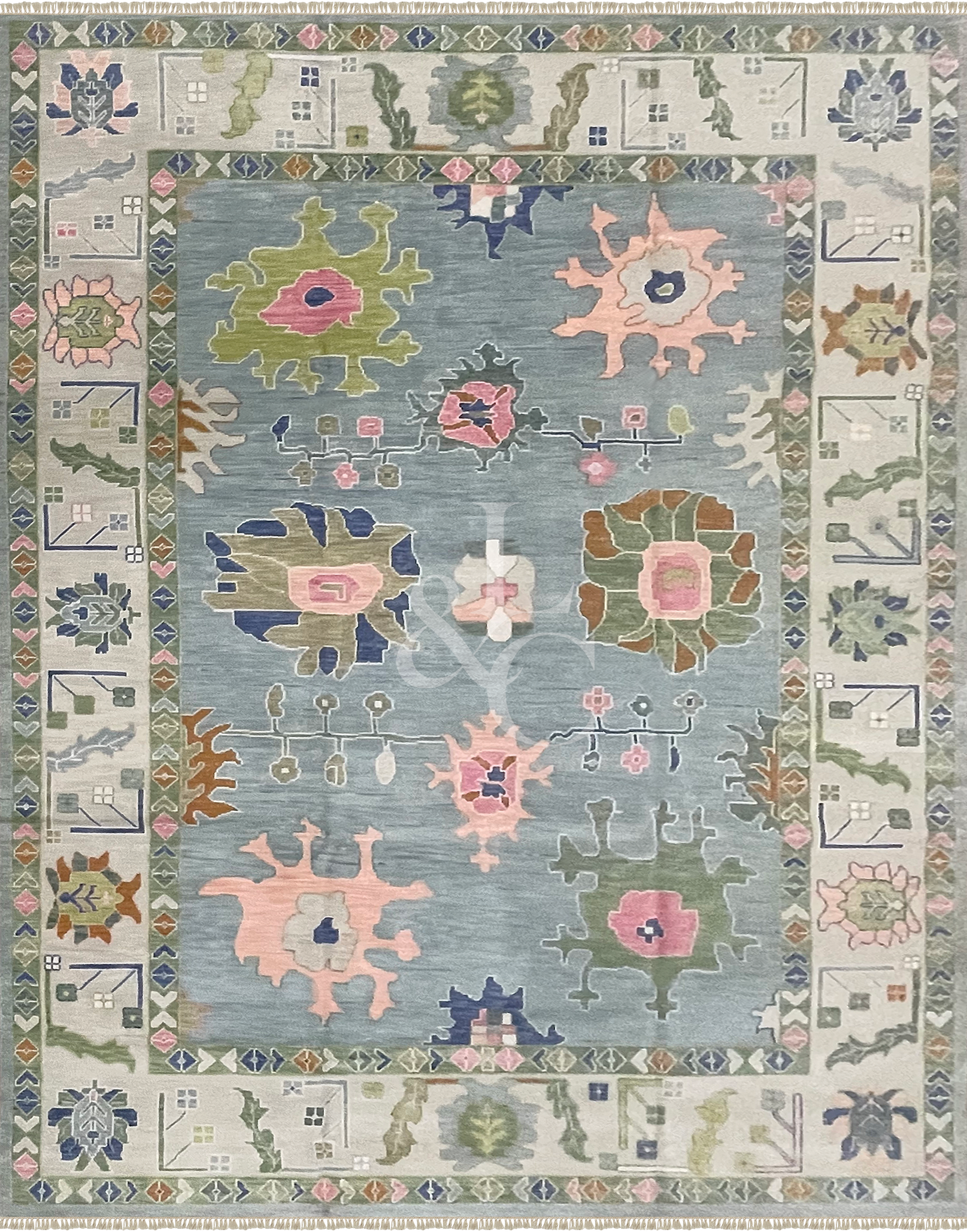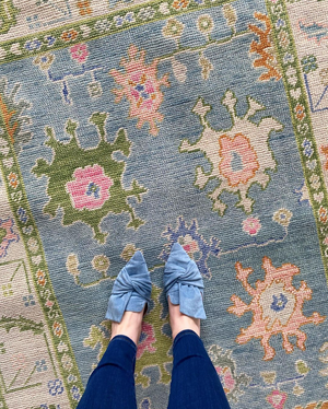 Friendly FYI: These are designed to be used as a *guide only*, and due to the incredibly special custom nature of our rugs, shades can vary based on dye lots and looms. (Once woven together, colors can also look a little more saturated.)